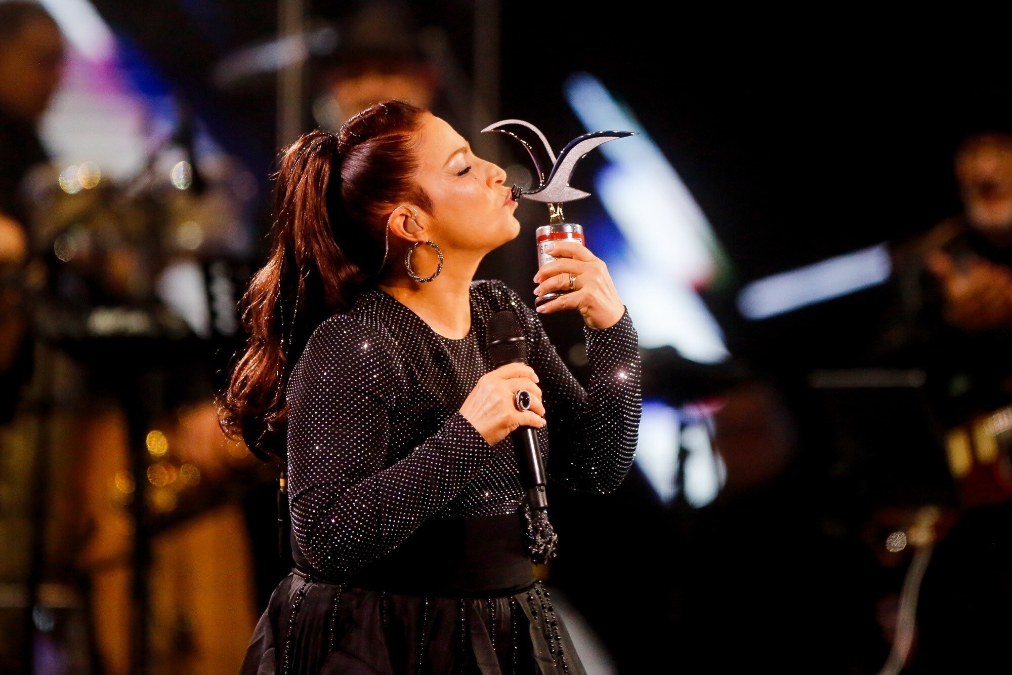 Acompañada por una banda imponente, con músicos de altísimo nivel y una puesta cuidada al detalle, Gloria ofreció un repertorio especialmente pensado para la Quinta Vergara. No faltaron clásicos que hicieron cantar a todo el anfiteatro como “Oye mi canto”, “Mi tierra”, “Hoy” y “Cuba libre”, en un recorrido que conectó distintas etapas de su carrera.