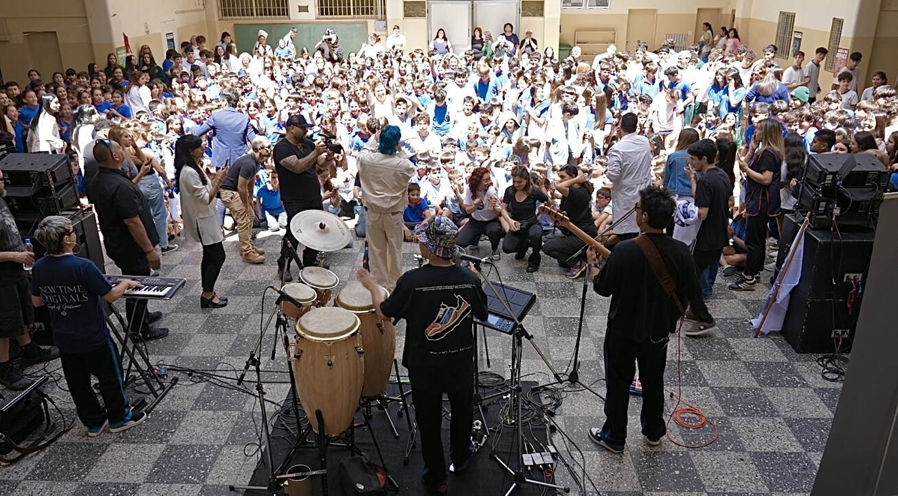 Luck Ra llegó, saludó y el recreo explotó. Entre “La Morocha”, “Tu Misterioso Alguien” y otras canciones, las escuelas enteras se prendieron a cantar y a bailar. Profes, alumnos, directivos: nadie se quedó quieto.