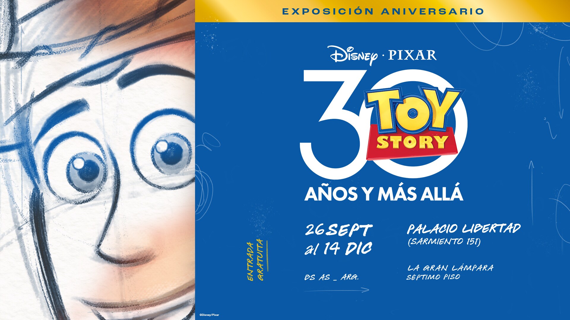 ¡Las puertas ya están abiertas! Toy Story 30: Exposición Aniversario debutó en Buenos Aires con un evento inaugural en la sala La Gran Lámpara del Palacio Libertad. Con entrada gratuita y acceso mediante reserva previa, la muestra celebra tres décadas de una de las franquicias más queridas de Disney y Pixar, y podrá visitarse hasta el 14 de diciembre, de miércoles a domingo de 14 a 20 hs. El acceso requiere la reserva anticipada de entradas a través del sitio web del Palacio Libertad.